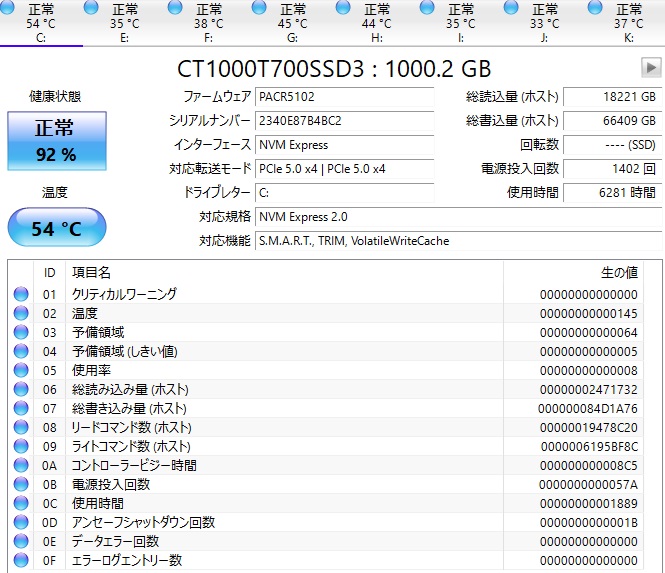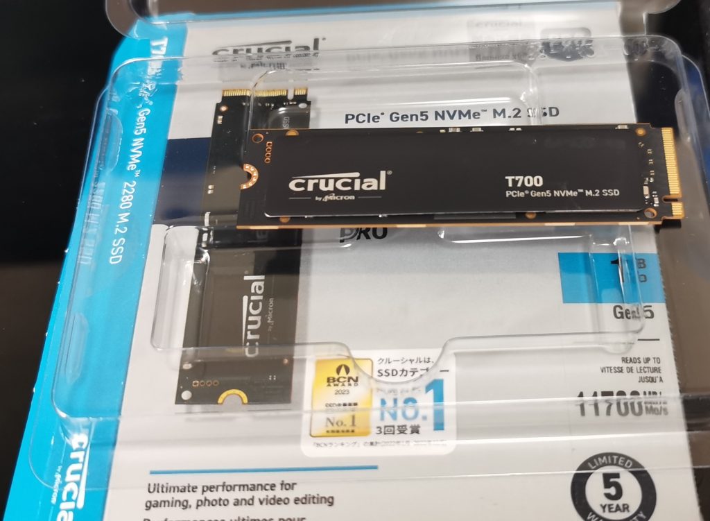 現在Cドライブで使っているのはMicron製Crucial T700 1TB ヒートシンク無しモデルです。