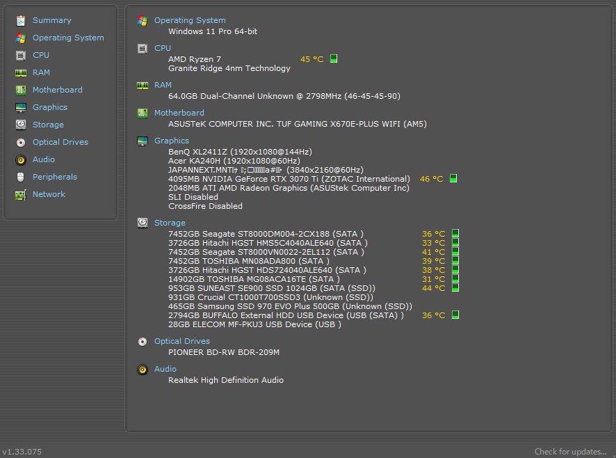 CPUはマザボ、メモリSSD等はほとんど一新したので今はGPU換装を狙っています。現在はRTX3070Tiでほとんど不便はないものの、やはり最新GPUが次々出てくるときになってしまいます。